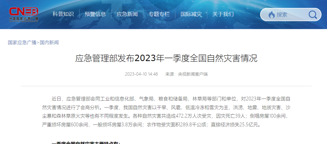 今年的一季度剛過(guò)去,地質(zhì)災(zāi)害統(tǒng)計(jì)數(shù)據(jù)便已出爐。在2023年一季度,全國(guó)共發(fā)生地質(zhì)災(zāi)害97起,以小型崩塌、地面塌陷為主。2023年一季度各種自然災(zāi)害共造成472.2萬(wàn)人次受災(zāi),因?yàn)?zāi)死亡39人;倒塌房屋100余間,嚴(yán)重?fù)p壞房屋600余間,一般損壞房屋3.8萬(wàn)余間;農(nóng)作物受災(zāi)面積289.8千公頃;直接經(jīng)濟(jì)損失25.5億元。