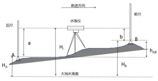 計(jì)算公式:兩點(diǎn)高差=后視-前視。