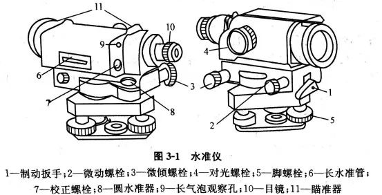 水準(zhǔn)儀(英文:level)是建立水平視線測(cè)定地面兩點(diǎn)間高差的儀器。原理為根據(jù)水準(zhǔn)測(cè)量原理測(cè)量地面點(diǎn)間高差。主要部件有望遠(yuǎn)鏡、管水準(zhǔn)器(或補(bǔ)償器)、垂直軸、基座、腳螺旋。按結(jié)構(gòu)分為微傾水準(zhǔn)儀、自動(dòng)安平水準(zhǔn)儀、激光水準(zhǔn)儀和數(shù)字水準(zhǔn)儀(又稱電子水準(zhǔn)儀)。按精度分為精密水準(zhǔn)儀和普通水準(zhǔn)儀。