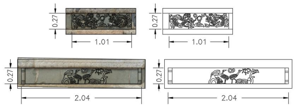 用大勢(shì)智慧模型瀏覽軟件“DasViewer”,可以查看“石塔”的外觀細(xì)節(jié),是否有裂縫、脫落跡象,也可以直接在模型上量距[8],如圖7。對(duì)“石塔”佛像、浮雕進(jìn)行放大截圖,描繪大樣圖,如圖8。