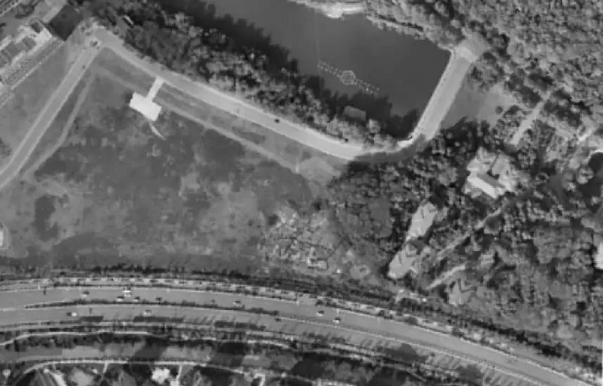 某測區(qū)面積約為50km2,呈狹長形,南北長約500m東西寬約100m。如下圖所示,測區(qū)地形復(fù)雜,植被高大茂盛,建筑物錯落分布,坡度起伏較大,測區(qū)部分高程差接近35m。