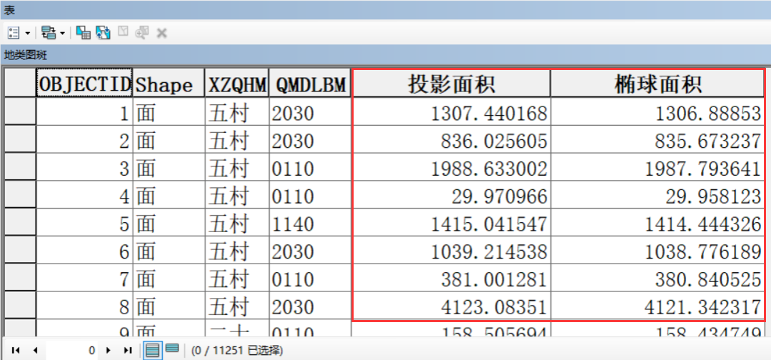 “AREA_GEO”字段記錄的就是“橢球面積”,“橢球面積”和“投影面積”略有不同,因為一個是“平面面積”,一個是“曲面面積”,這兩個都沒有錯哦!