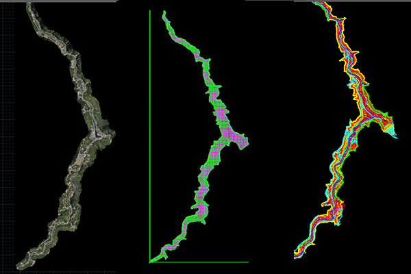 RTK與無人機在雅安天全某水電站庫容加地形測量中的應(yīng)用,本項目采用RTK,并大量使用大疆M300RTK+LI進行仿地飛行,保證精度,防撞山。特殊地帶采用繞飛或手動飛行,事后動態(tài)差分處理,并全線布設(shè)檢查點驗證精度。